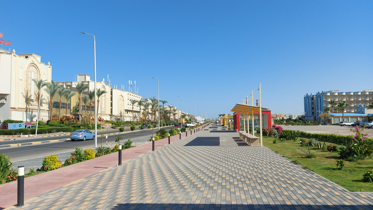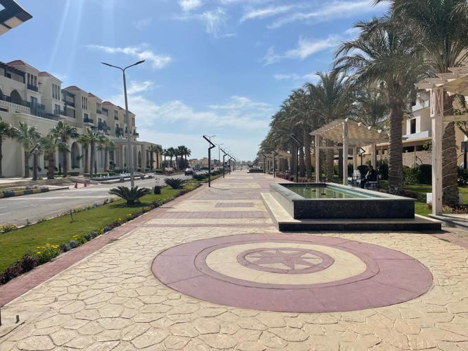 Gemeubileerd 2-slaapkamer appartement te koop in Esplanade Hurghada. 128 m², 4e verdieping, panoramisch zeezicht, zwembad, parkeergelegenheid, groen contract.